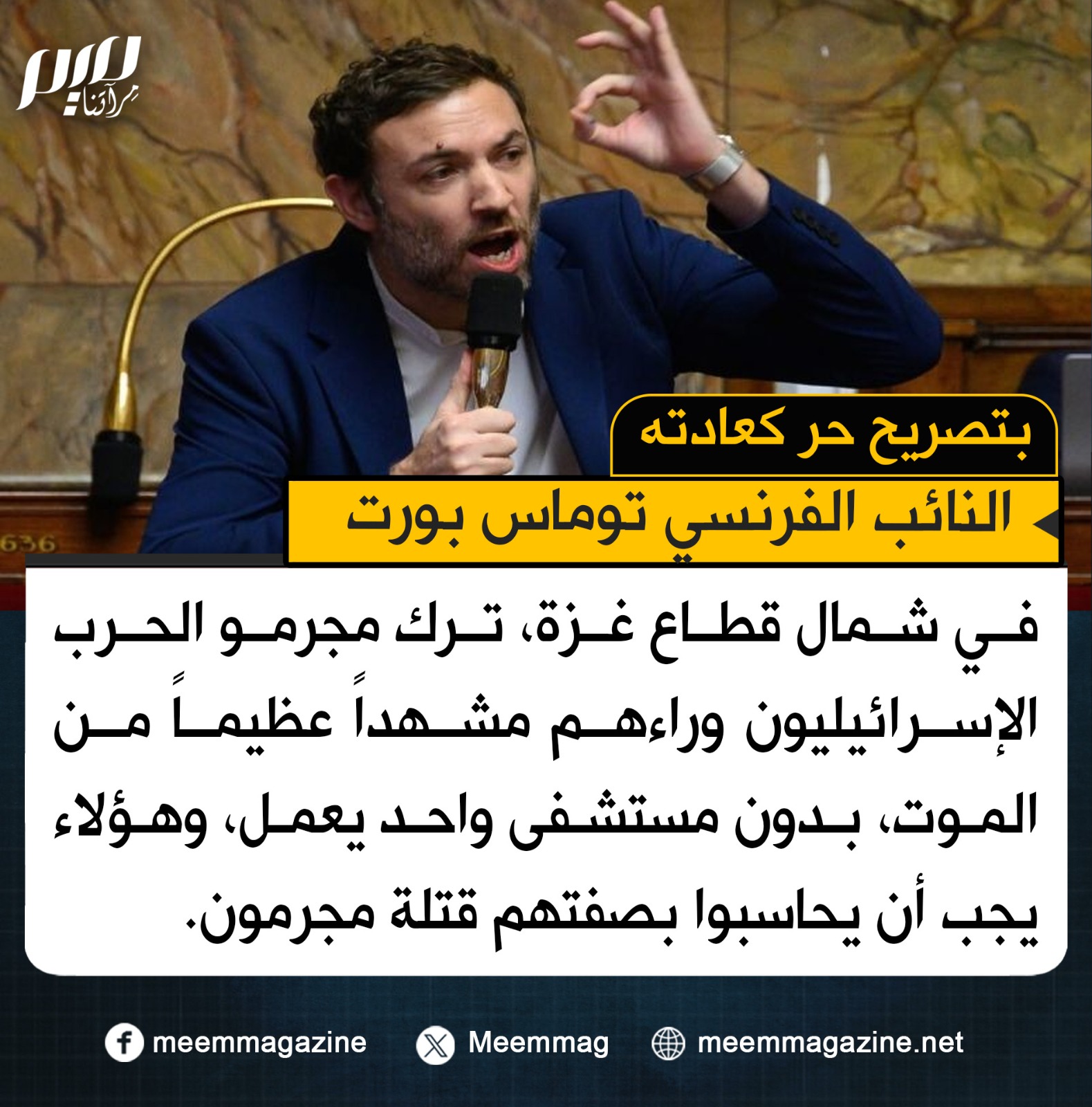 بتصريح حر كعادته.. بورت: في شمال قطاع غزة، ترك مجرمو الحرب الإسرائيليون وراءهم مشهداً عظيماً من الموت، بدون مستشفى واحد يعمل، وهؤلاء يجب أن يحاسبوا بصفتهم قتلة مجرمون.