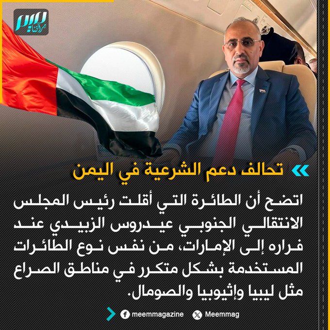تحالف دعم الشرعية: الطائرة التي أقلت الزبيدي عند فراره إلى الإمارات، من نفس نوع الطائرات المستخدمة في مناطق الصراع مثل ليبيا وإثيوبيا والصومال.
