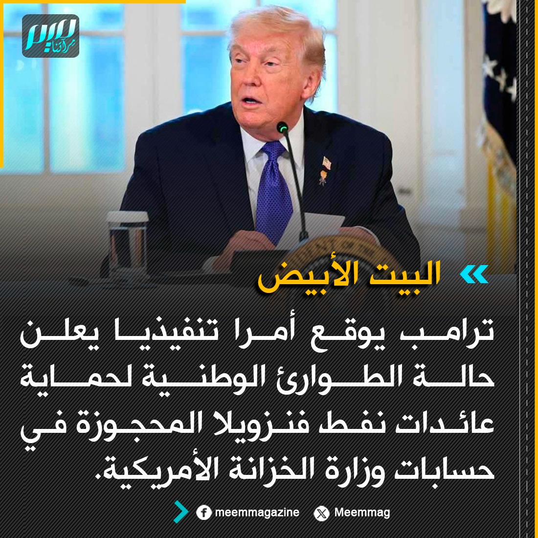 ترامب يوقع أمرا تنفيذيا يعلن حالة الطوارئ الوطنية لحماية عائدات نفط فنزويلا