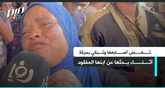 أم فلسطينية تعض أصابعها وتبكي بحرقة، أثناء بحثها بين الأسرى المحررين عن ابنها المفقود في حرب الاحتلال على قطاع غزة.
