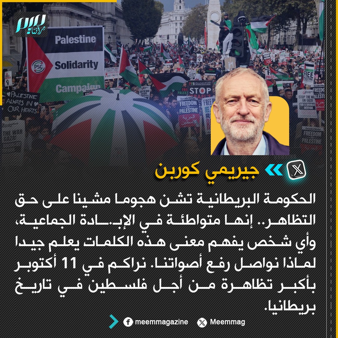 البرلماني البريطاني جيريمي كوربن: حكومة ستارمر تشن هجوما مشينا على حق التظاهر.. إنها متواطئة في الإبـ.ـادة الجماعية، وأي شخص يفهم معنى هذه الكلمات يعلم جيدا لماذا نواصل رفع أصواتنا.