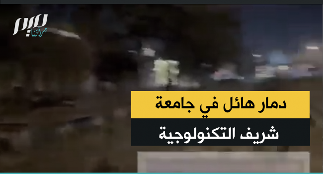 لقطات نشرتها وسائل إعلام إيرانية توثق الأضرار التي لحقت بجامعة شريف التكنولوجيةفي طهران، عقب استهدافها بقنابل خارقة للتحصينات، ليل الاثنين.