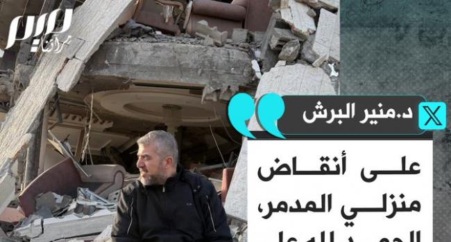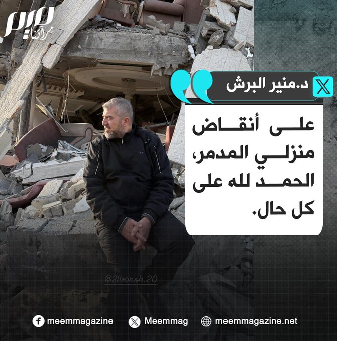 د.منير البرش: على أنقاض منزلي المدمر، الحمد لله على كل حال.