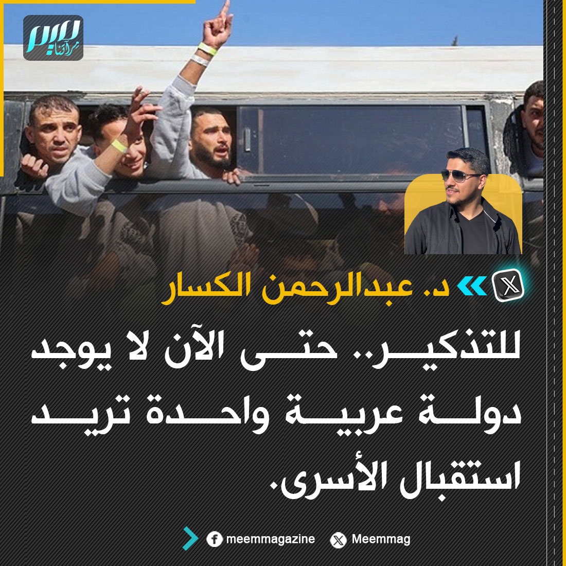 د. عبدالرحمن الكسار: للتذكير.. حتى الآن لا يوجد دولة عربية واحدة تريد استقبال الأسرى.