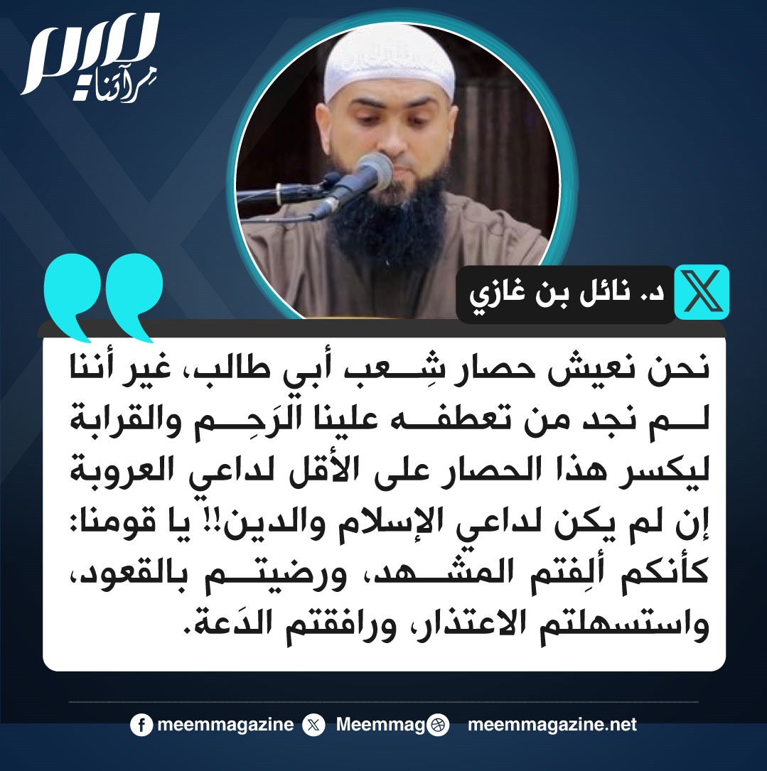 د. نائل بن غازي: نحن نعيش حصار شِعب أبي طالب، غير أننا لم نجد من تعطفه علينا الرَحِم والقرابة ليكسر هذا الحصار.