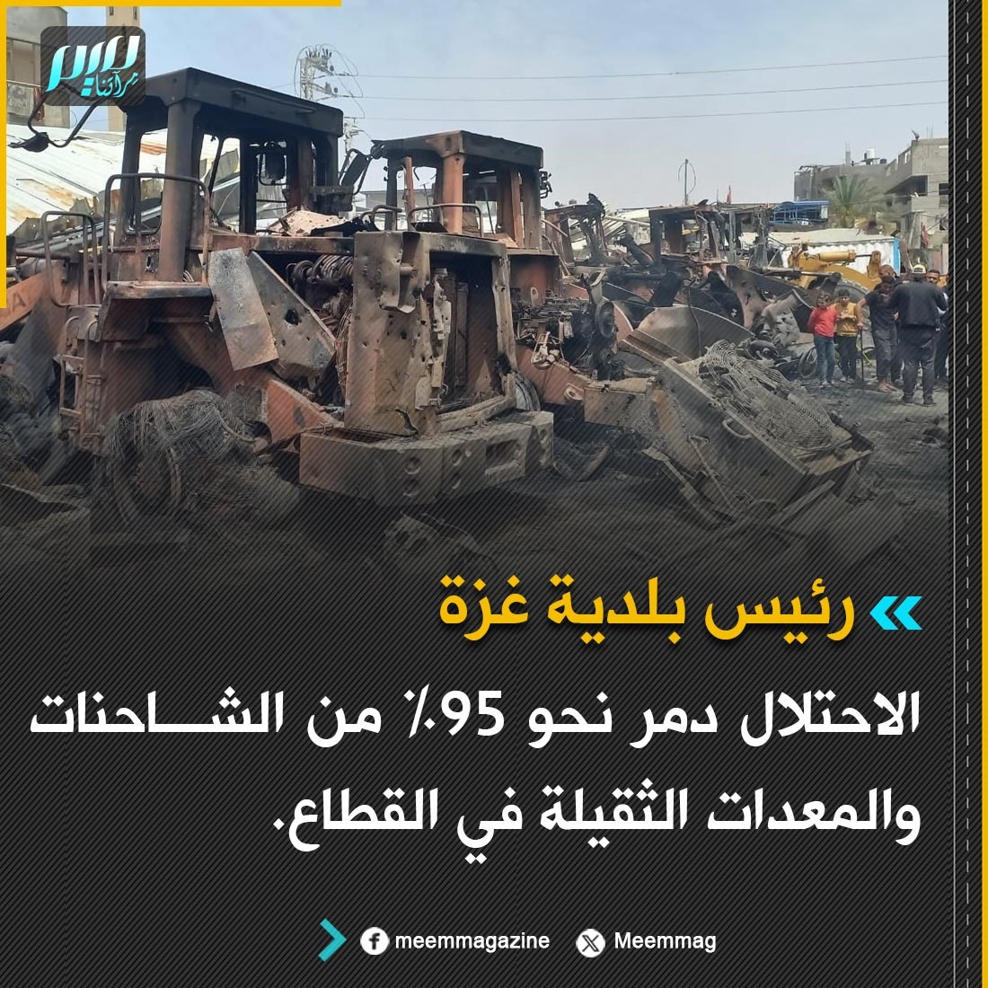 رئيس بلدية غزة: الاحتلال دمر نحو 95% من الشاحنات والمعدات الثقيلة في القطاع.