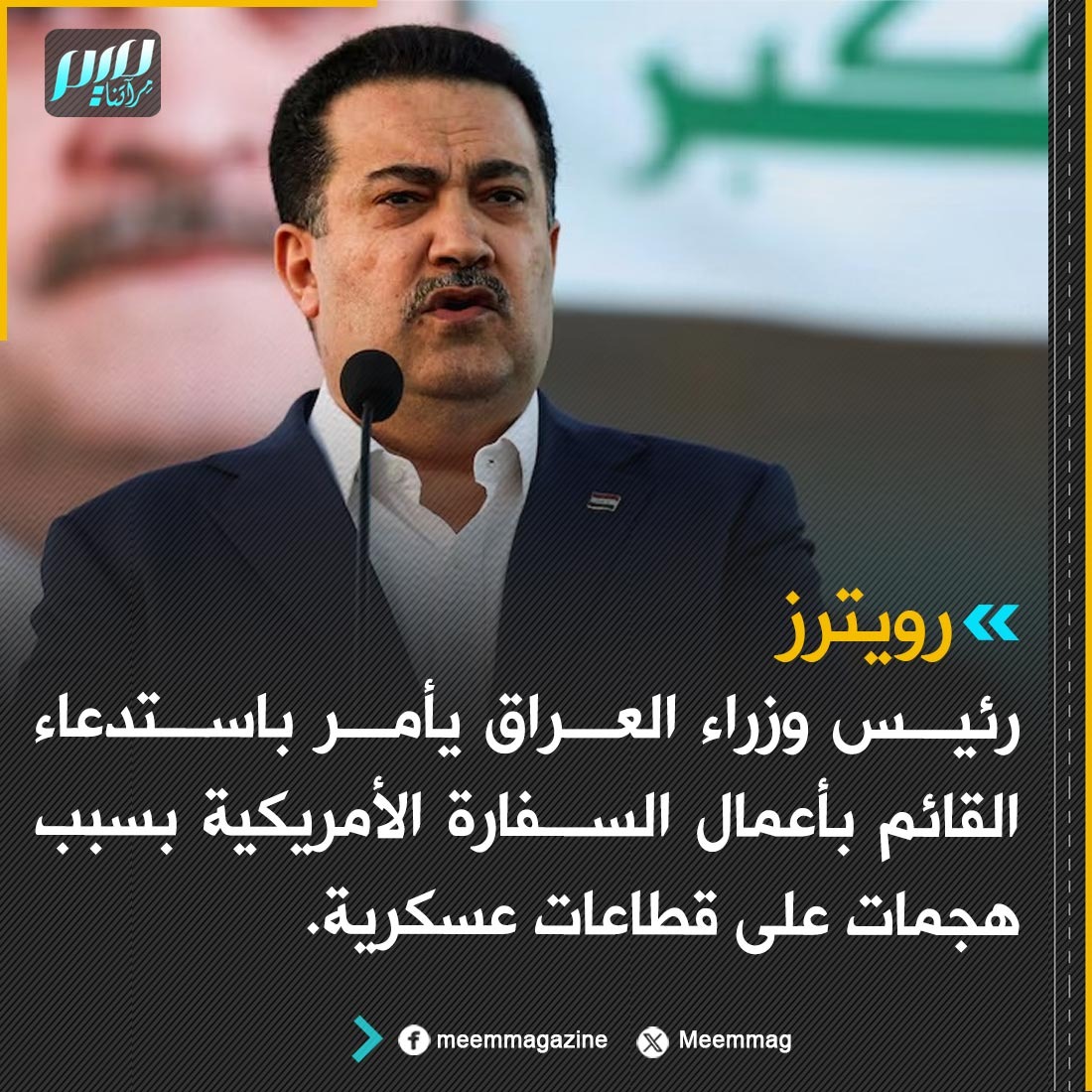 رويترز: رئيس وزراء العراق يأمر باستدعاء القائم بأعمال السفارة الأمريكية بسبب هجمات على قطاعات عسكرية.