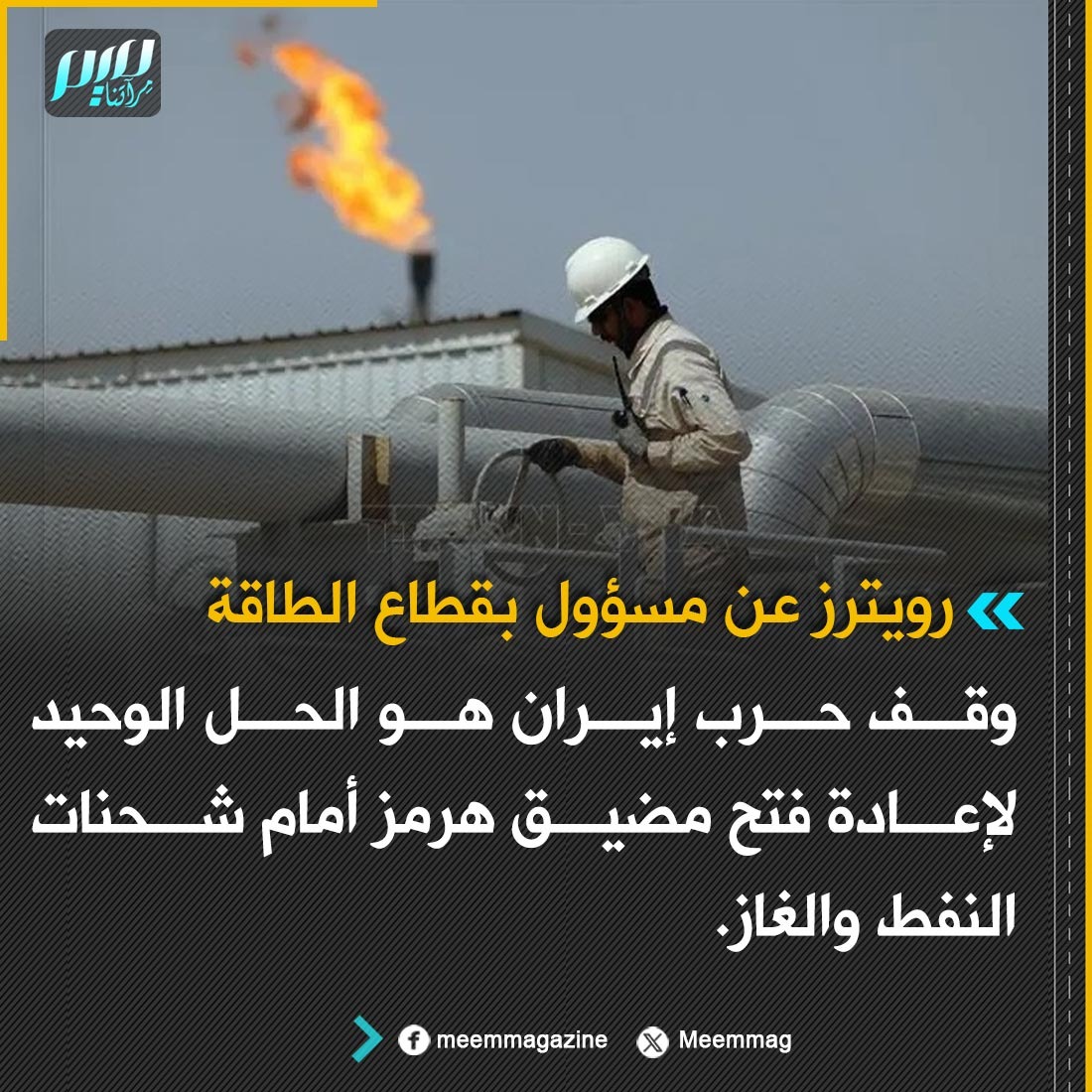 رويترز عن مسؤول بقطاع الطاقة: وقف ⁠حرب إيران ​هو الحل ​الوحيد لإعادة فتح مضيق هرمز ​أمام ​شحنات النفط والغاز