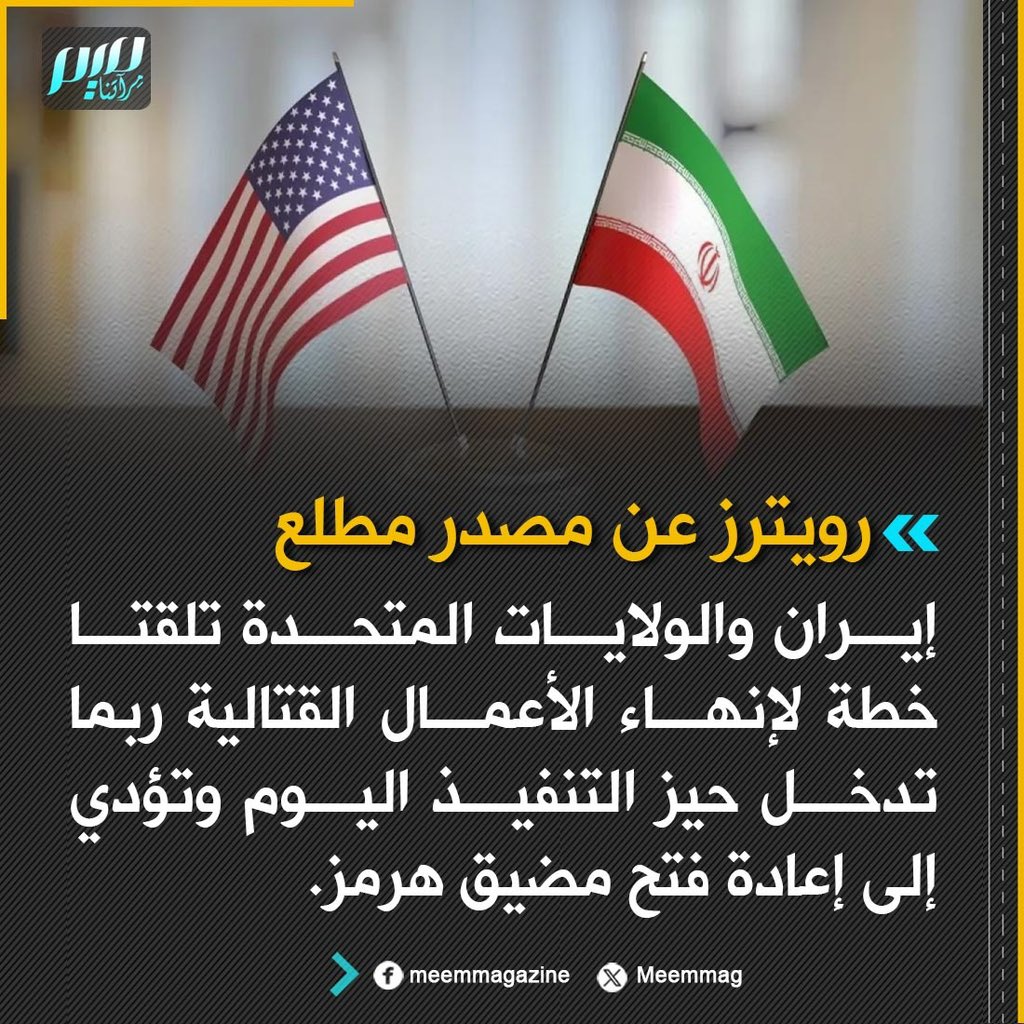 رويترز عن مصدر مطلع: إيران والولايات ‌المتحدة تلقتا خطة لإنهاء الأعمال القتالية ربما تدخل ​حيز التنفيذ اليوم ​وتؤدي إلى إعادة فتح ⁠مضيق هرمز.