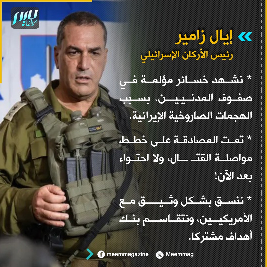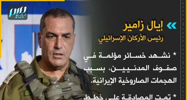زامير: نشهد خسائر مؤلمة بصفوف المدنيين نتيجة الهجمات الصاروخية.. سنواصل القتال ولا احتواء بعد الآن!
