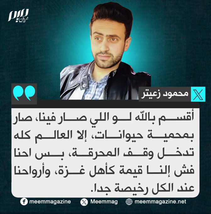 زعيتر: "أقسم بالله لو اللي صار فينا، صار بمحمية حيوانات، إلا العالم كله تدخل وقف المحرقة"!