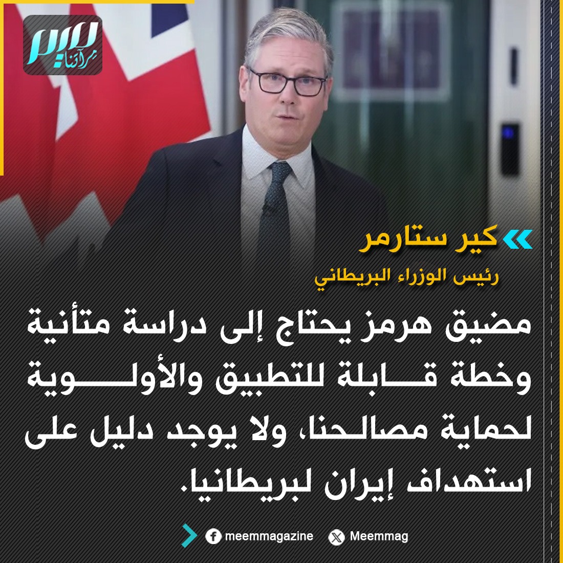 ستارمر: مضيق هرمز يحتاج إلى دراسة متأنية وخطة قابلة للتطبيق والأولوية لحماية مصالحنا، ولا يوجد دليل على استهداف إيران لبريطانيا.