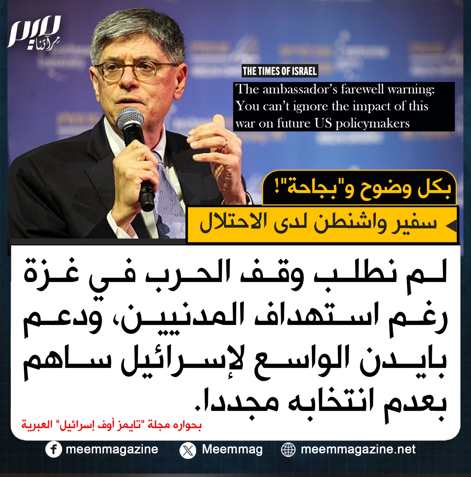 بكل وضوح و"بجاحة".. سفير واشنطن لدى الاحتلال: لم نطلب وقف الحرب في غزة رغم استهداف المدنيين، ودعم بايدن الواسع لإسرائيل ساهم بعدم انتخابه مجددا.