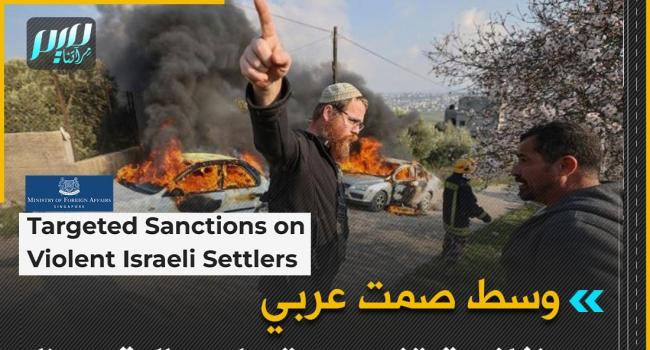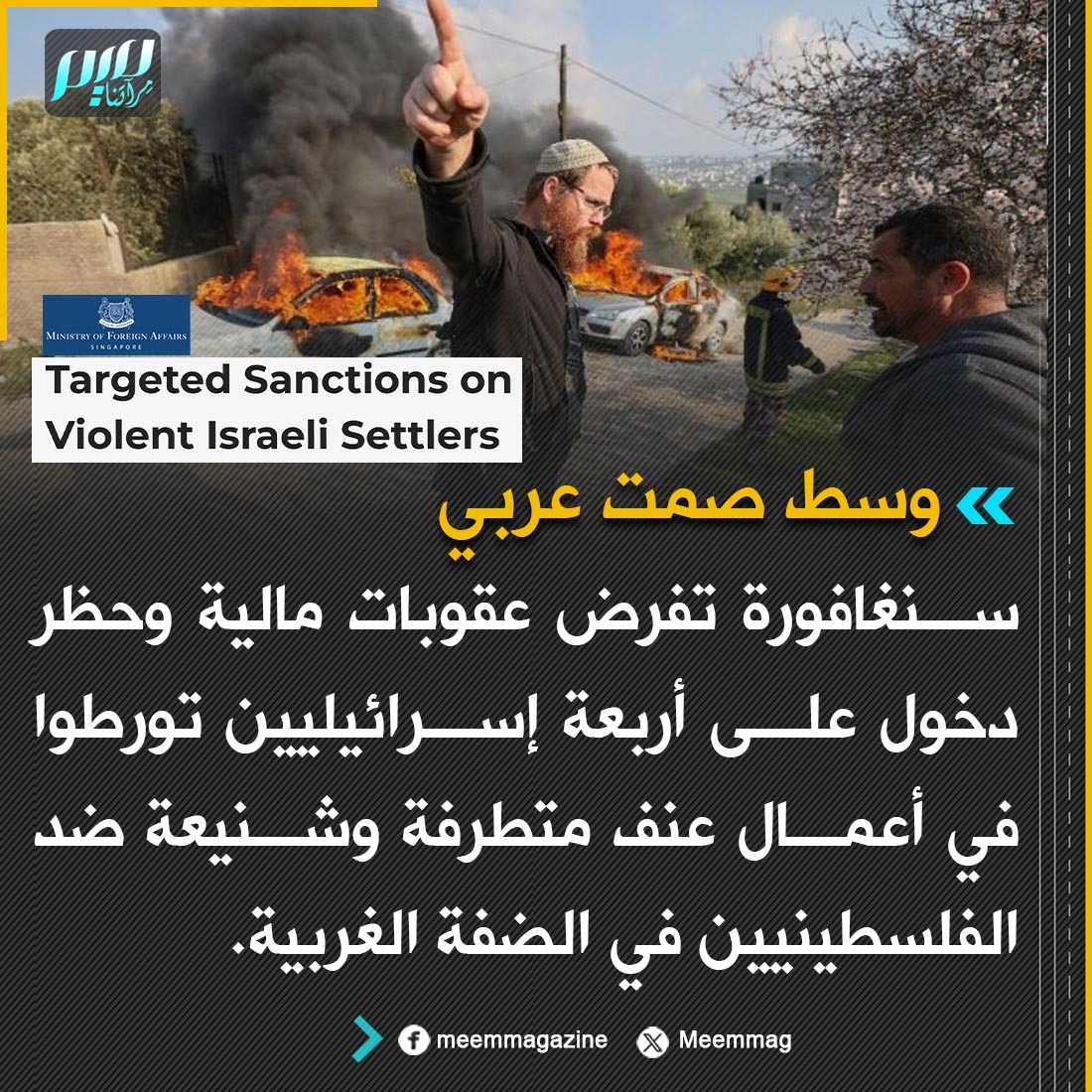 سنغافورة تفرض عقوبات مالية وحظر دخول على أربعة إسرائيليين تورطوا في أعمال عنف متطرفة وشنيعة ضد الفلسطينيين في الضفة الغربية.