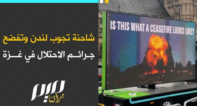 شاحنة تجوب شوارع لندن، تنقل مشاهد تكشف حجم الدمار وجرائـ ـم قـ ـتل الأطفال، وتفضح استمرار الإبـ ـادة الجماعية في غزة رغم وقف إطلاق النار.