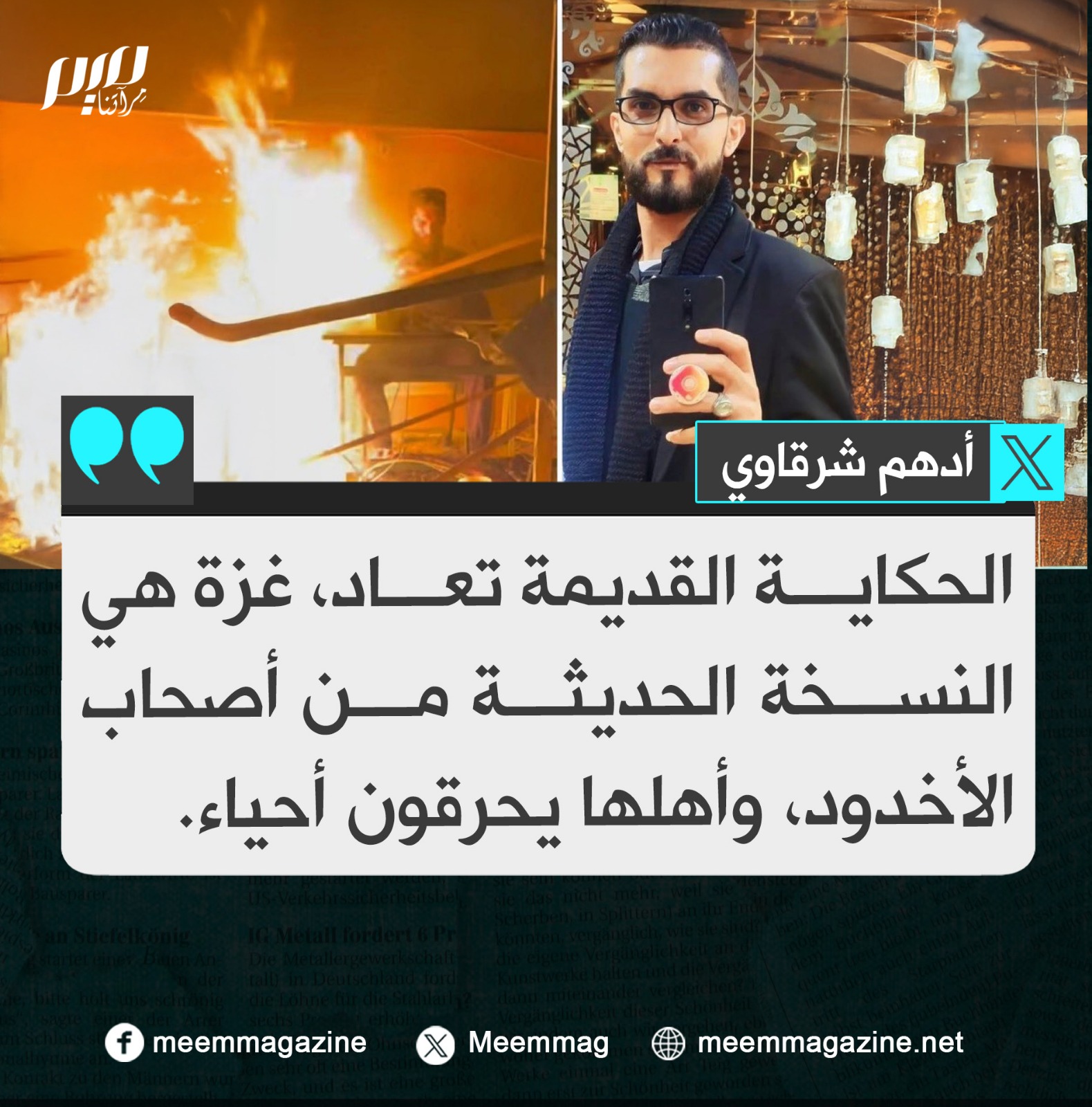 شرقاوي: الحكاية القديمة تعاد، غزة هي النسخة الحديثة من أصحاب الأخدود، وأهلها يحرقون أحياء.