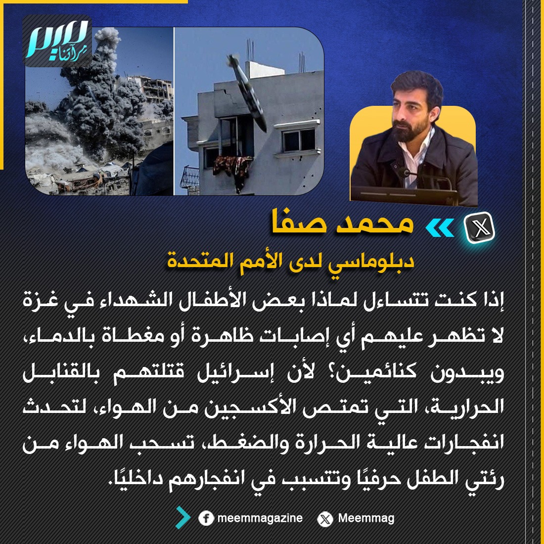 صفا: إذا كنت تتساءل لماذا بعض الأطفال الشهداء في غزة لا تظهر عليهم أي إصابات ظاهرة أو مغطاة بالدماء، ويبدون كنائمين؟
