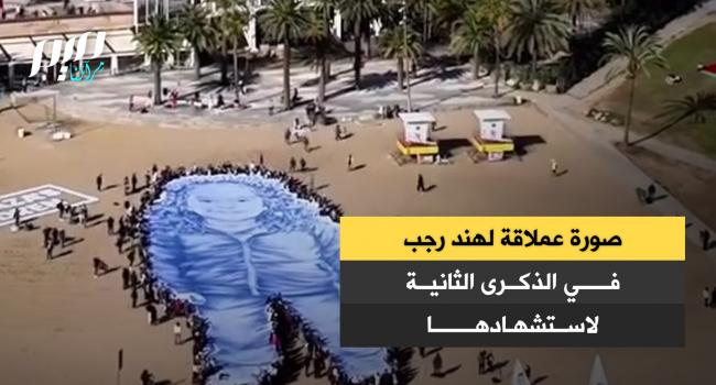 "بحضور والدتها وسام حمادة".. نشطاء يحيون الذكرى الثانية لاستشهاد الطفلة الفلسطينية هند رجب برفع صورة عملاقة لها على شاطئ سوموروسترو في مدينة برشلونة.