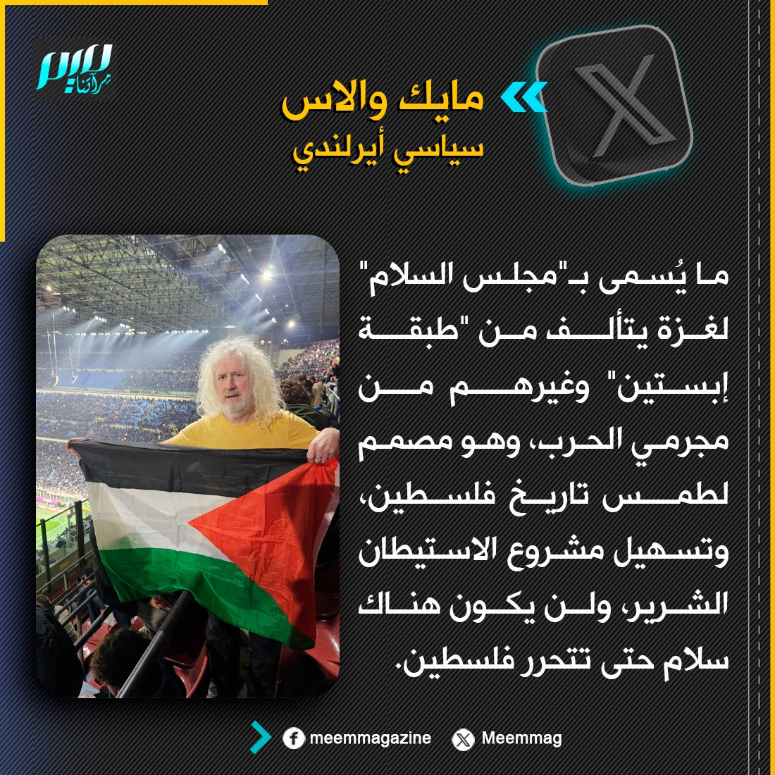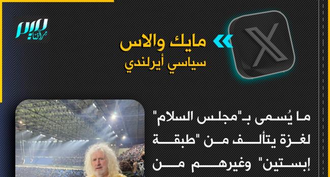 سياسي أيرلندي: ما يُسمى بـ"مجلس السلام" لغزة يتألف من "طبقة إبستين" وغيرهم من مجرمي الحرب، وهو مصمم لطمس تاريخ فلسطين، وتسهيل مشروع الاستيطان الشرير، ولن يكون هناك سلام حتى تتحرر فلسطين.