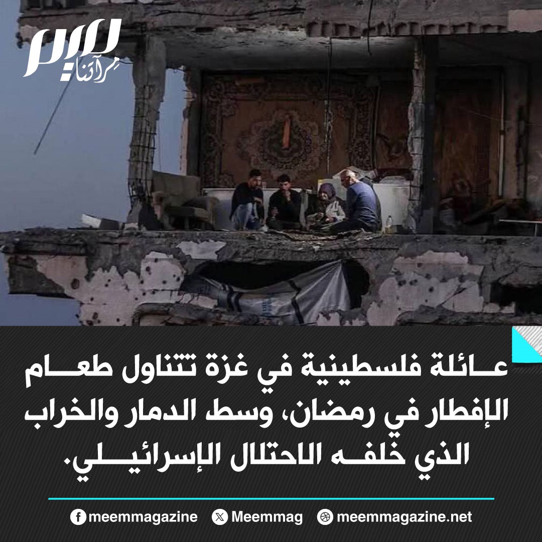 وسط الدمار والخراب.. عائلة فلسطينية في غزة تتناول طعام الإفطار في رمضان.