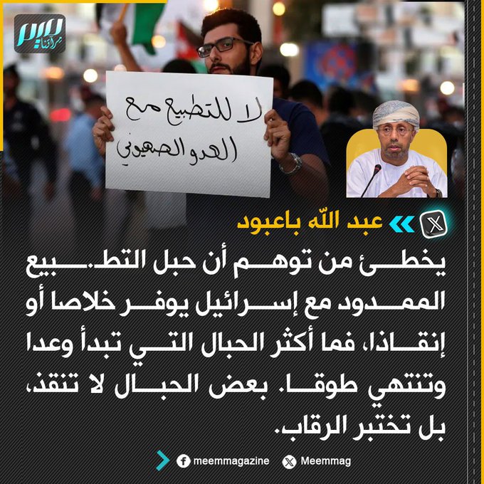 عبد الله باعبود: يخطئ من توهم أن حبل التطـ.ـبيع الممدود مع إسرائيل يوفر خلاصا أو إنقاذا، فما أكثر الحبال التي تبدأ وعدا وتنتهي طوقا.