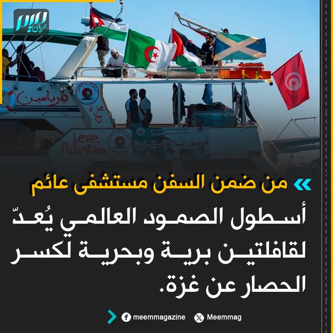عضو أسطول الصمود العالمي وائل نوار: فتح باب التسجيل للمشاركة في الموجة الثانية من الأسطول عبر البحر، وسيكون من ضمن السفن هذه المرة مستشفى عائم، وسفينة متخصصة في البناء الإيكولوجي، وأخرى موجهة لتلاميذ غزة.