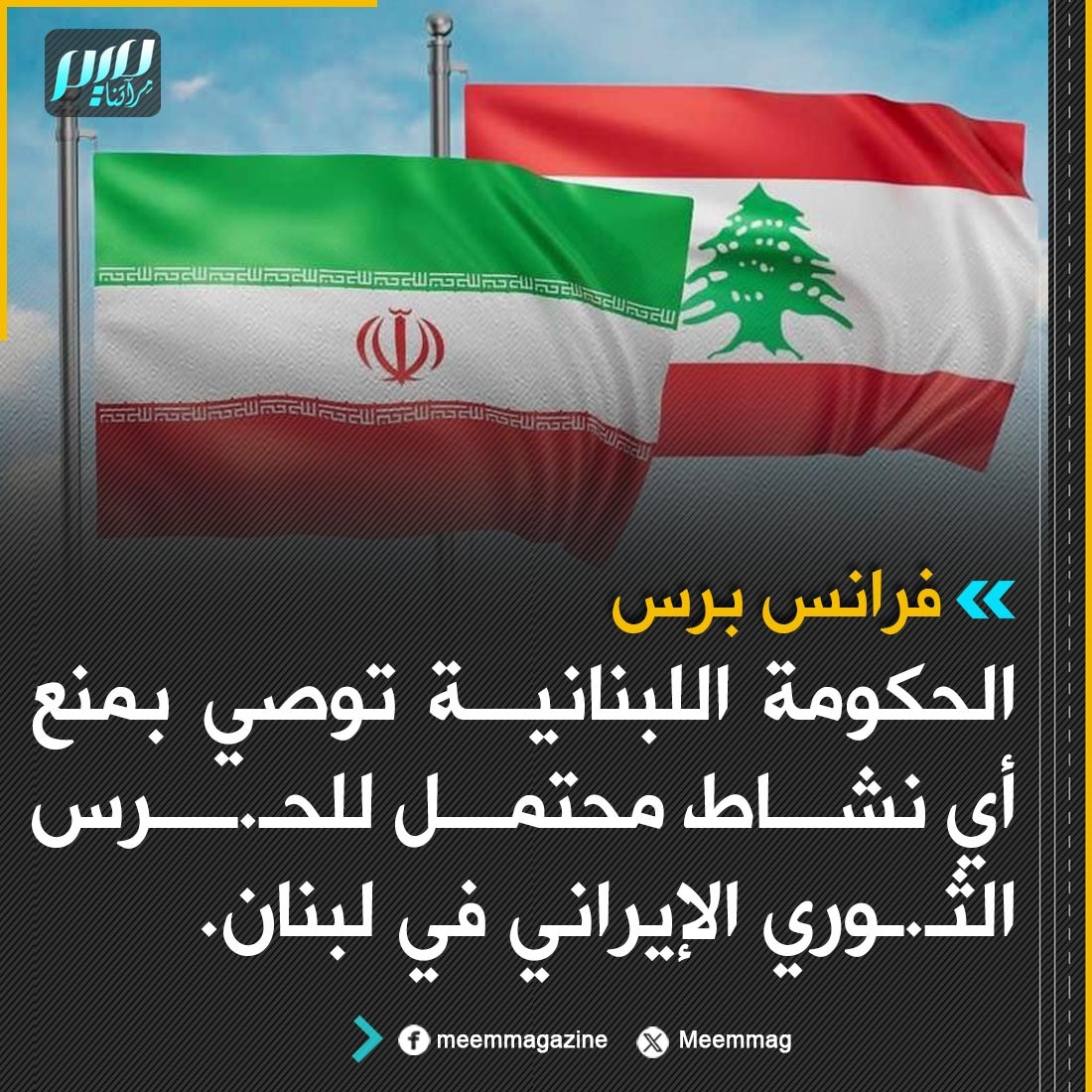 فرانس برس: الحكومة اللبنانية توصي بمنع أي نشاط محتمل للحـ.ـرس الثـ.ـوري الإيراني في لبنان.
