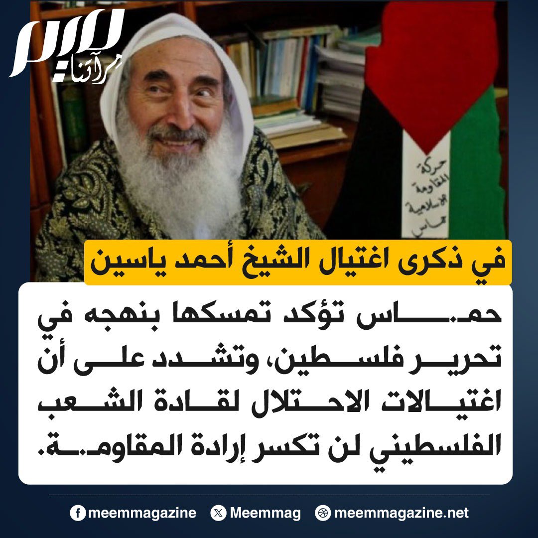 في ذكرى اغتيال الشيخ أحـ ـمد ياسـ ـين.. حمـ ـاس تؤكد تمسكها بنهجه في تحرير فلسطين.