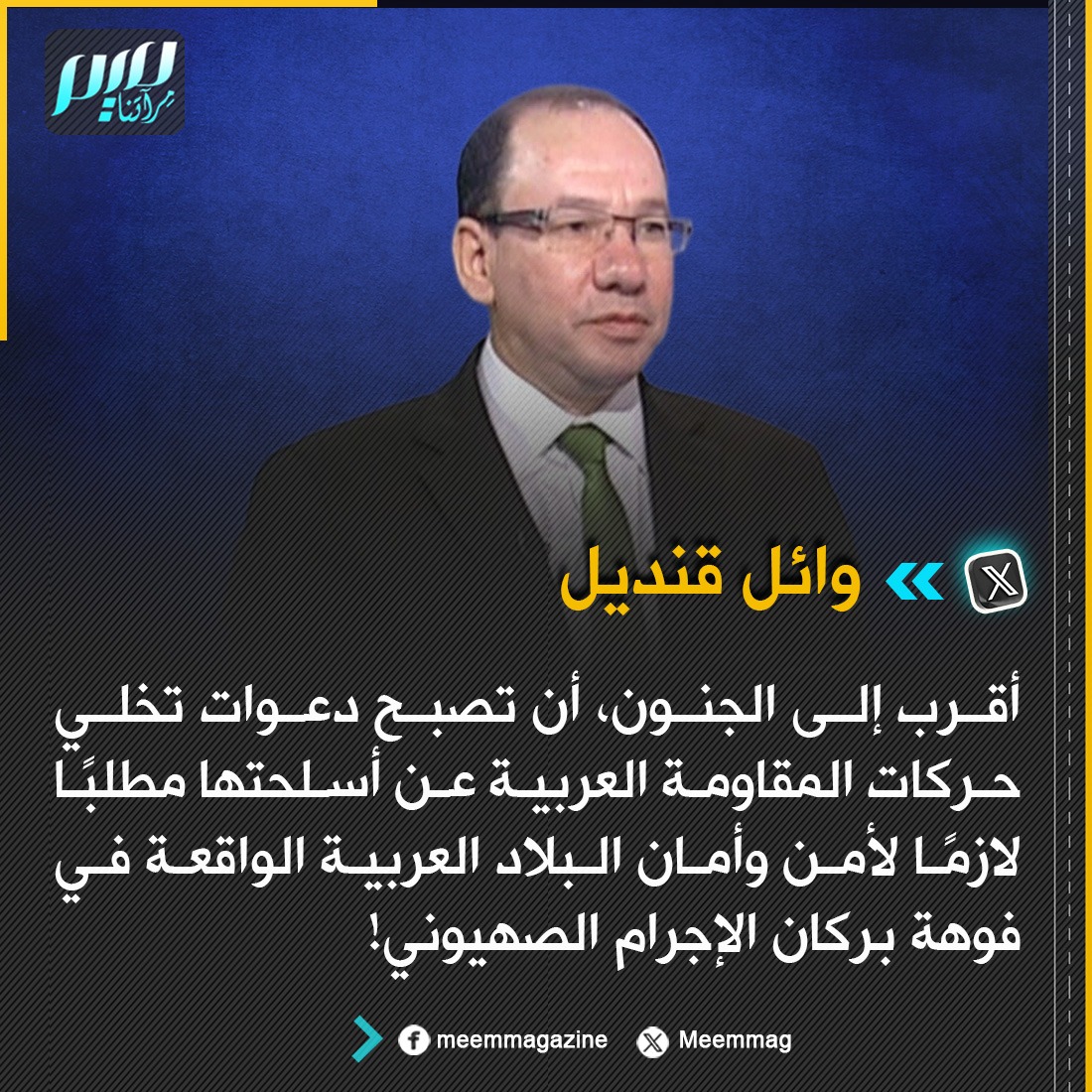 قنديل: أقرب إلى الجنون، أن تصبح دعوات تخلي حركات المقـ ـاومة العربية عن أسلحتها مطلبًا لازمًا لأمن وأمان البلاد العربية الواقعة في فوهة بركان الإجرام الصهيوني!