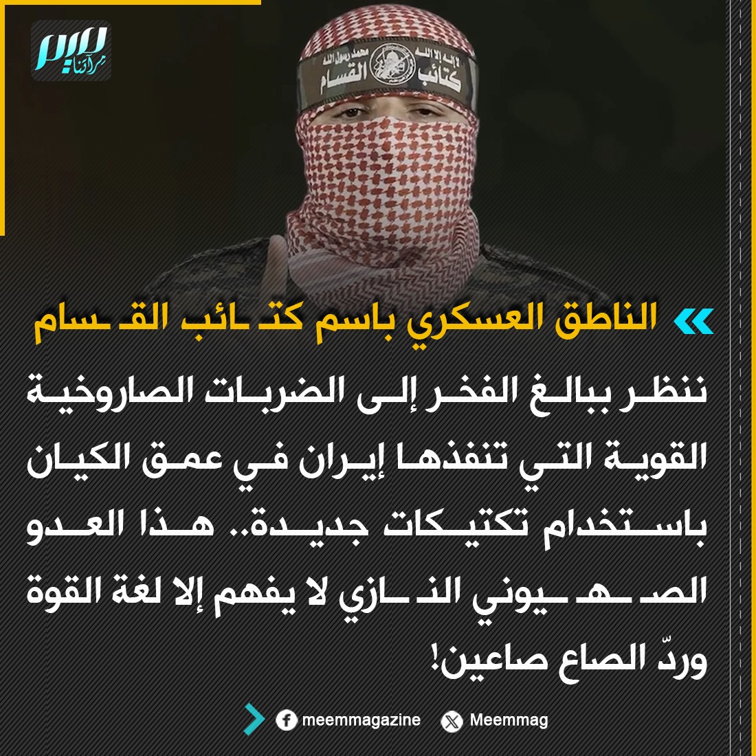كتائب القسام: نفخر بالضربات الصاروخية القوية التي تنفذها إيران في عمق الكيان.. هذا العدو لا يفهم إلا لغة القوة وردّ الصاع صاعين!