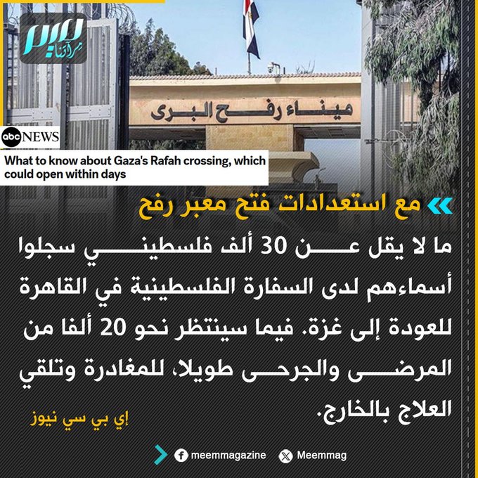 مع استعدادات فتح معبر رفح وتضارب أعداد المسموح لهم بالعبور، ما لا يقل عن 30 ألف فلسطيني سجلوا أسماءهم لدى السفارة الفلسطينية في القاهرة للعودة إلى غزة.