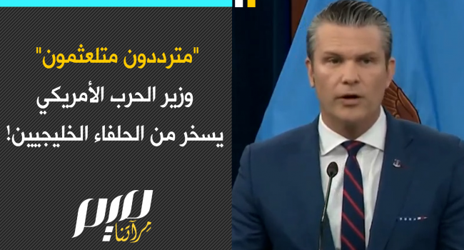 في ندوة بالبنتاغون، بيت هيغسيث يسخر من حلفاء أمريكا بالخليج، ويشيد بإسرائيل، "على عكس كثير من حلفائنا التقليديين الذين يلوّحون بأيديهم قلقاً ويمسكون لآلئهم، مترددين ومتلعثمين."