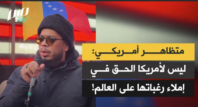متظاهر أمريكي في تايمز سكوير: "كيف يجرؤ ترامب على القول إنهم يديرون فنزويلا؟ شعب فنزويلا هو من يدير فنزويلا. ليس للولايات المتحدة أي حق في إملاء رغباتها على شعوب العالم. ليس للولايات المتحدة أي حق في السيطرة على الموارد الطبيعية لأي بلد آخر. النفط في فنزويلا ملك لشعب فنزويلا."