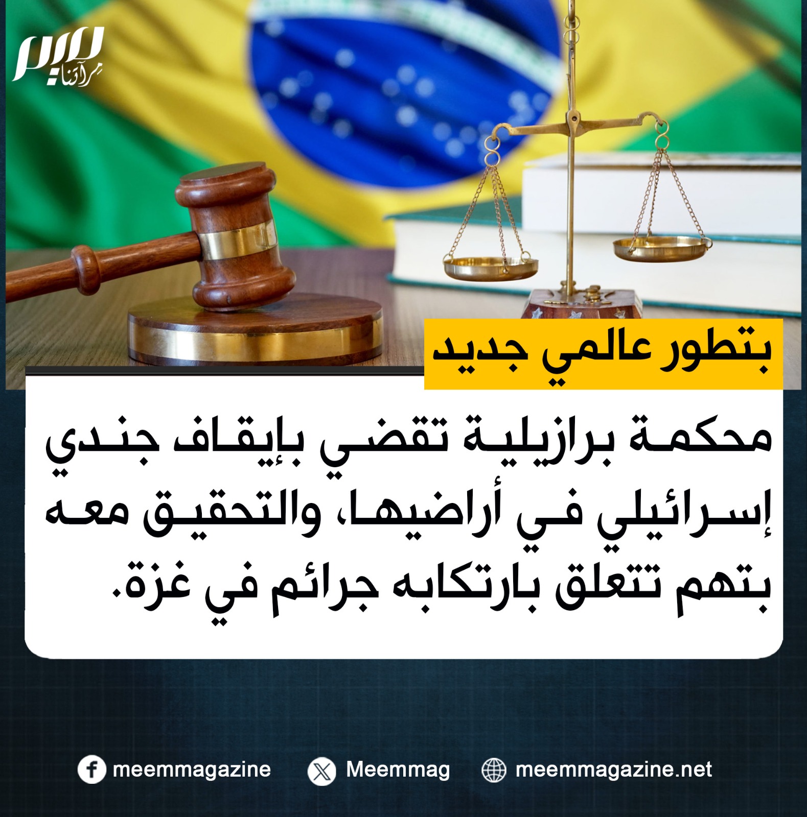 بتطور عالمي جديد.. محكمة برازيلية تقضي بإيقاف جندي إسرائيلي في أراضيها، والتحقيق معه بتهم تتعلق بارتكابه جرائم في غزة.