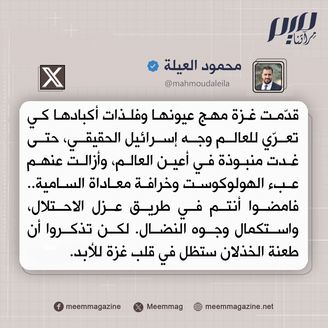 محمود العيلة: تذكروا أن طعنة الخذلان ستظل في قلب غزة للأبد.