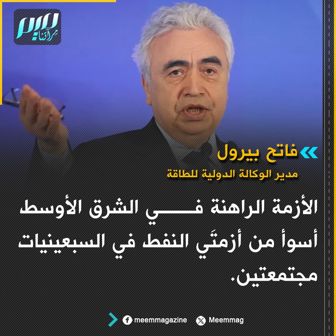 مدير الوكالة الدولية للطاقة: الأزمة الراهنة في الشرق الأوسط أسوأ من أزمتَي النفط في السبعينيات مجتمعتين.