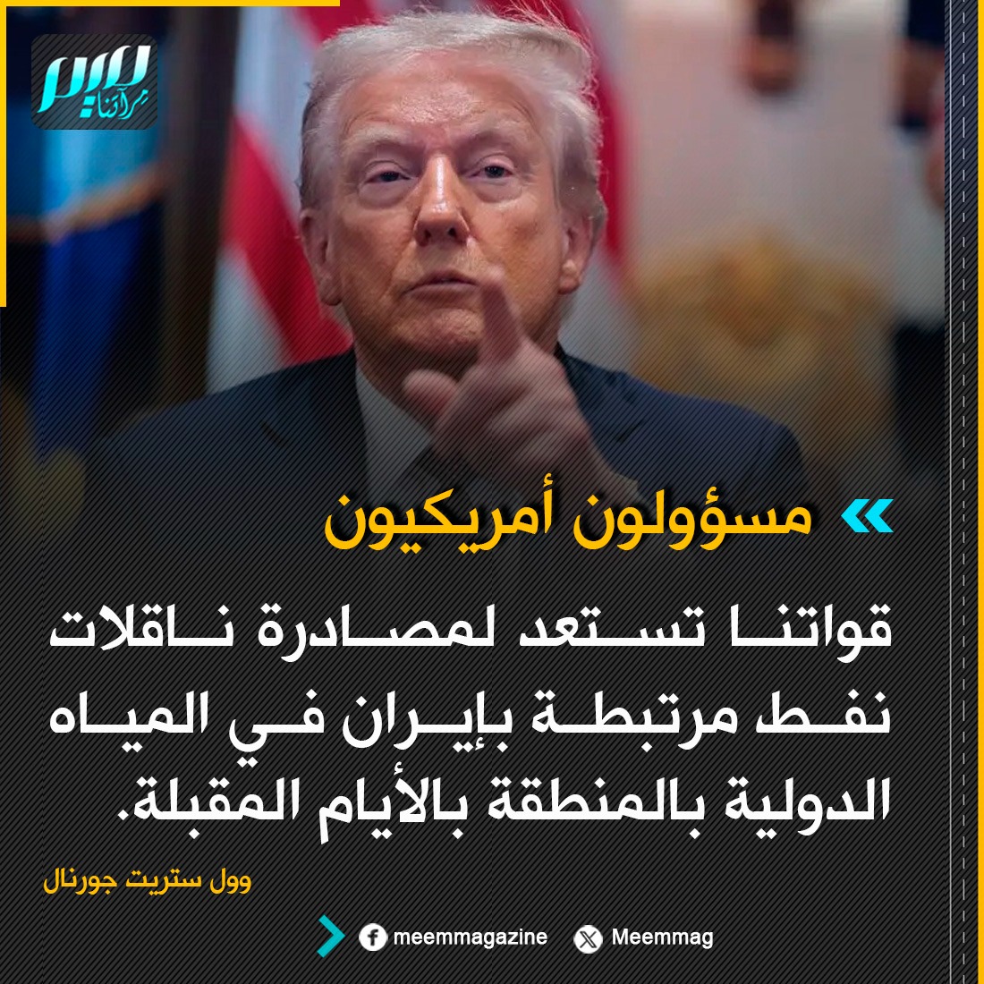 مسؤولون أمريكيون لـ"وول ستريت جورنال": قواتنا تستعد لمصادرة ناقلات نفط مرتبطة بإيران في المياه الدولية بالمنطقة بالأيام المقبلة.