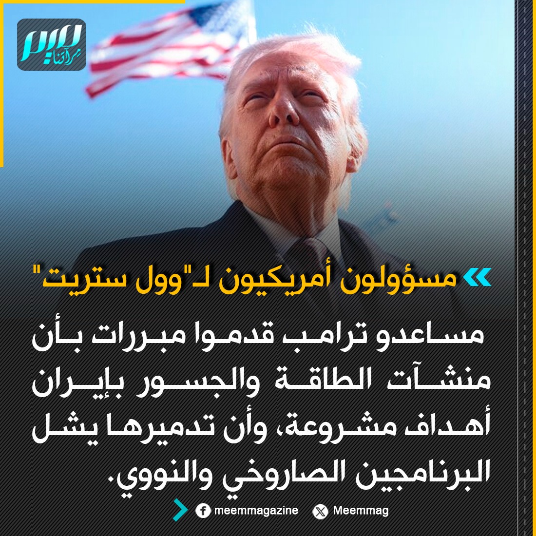 مسؤولون أمريكيون لـ"وول ستريت": مساعدو ترامب قدموا مبررات بأن منشآت الطاقة والجسور بإيران أهداف مشروعة