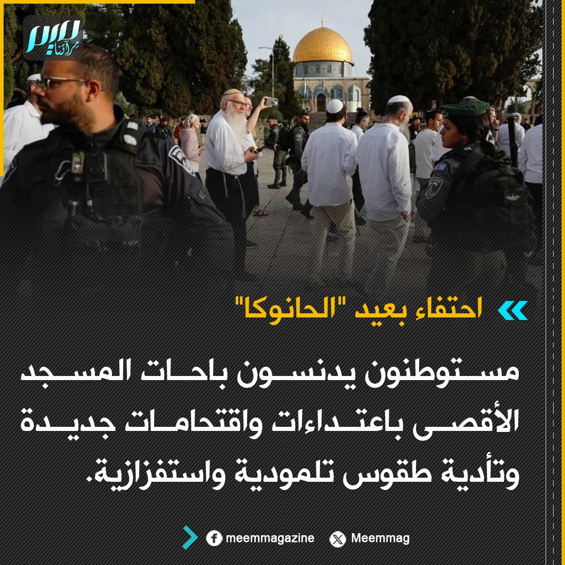 احتفاء بعيد "الحانوكا" اليهودي.. مستوطنون يدنسون باحات المسجد الأقصى باعتداءات واقتحامات جديدة وتأدية طقوس تلمودية واستفزازية.