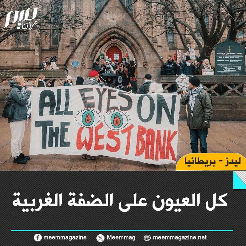 مشهد من الاحتجاجات المؤيدة للفلسطينيين في ليدز، المملكة المتحدة.