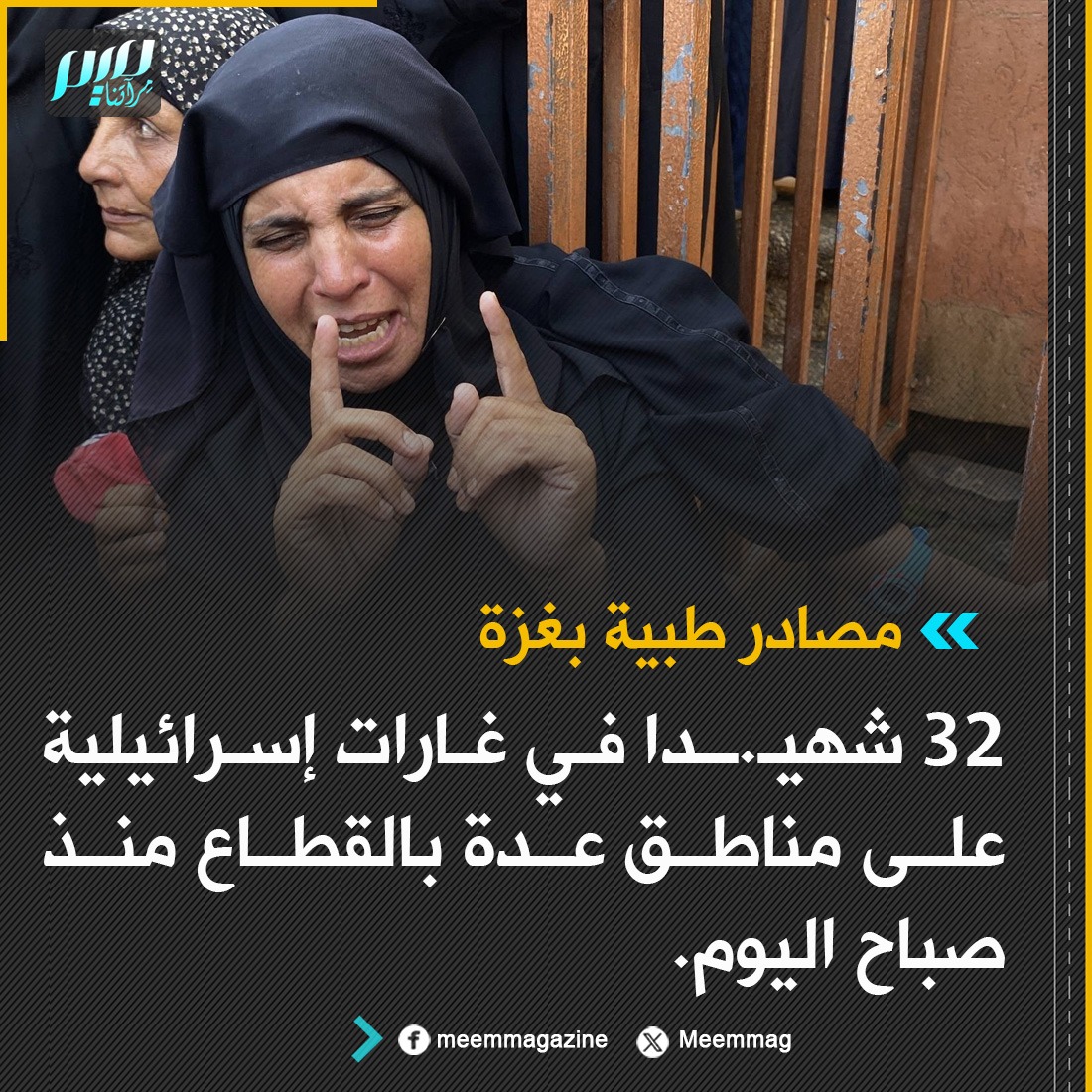 مصادر طبية بغزة: 32 شهيـ.ـدا في غارات إسرائيلية على مناطق عدة بالقطاع منذ صباح اليوم.