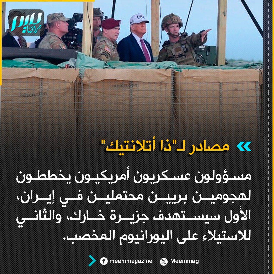 مصادر لـ"ذا أتلانتيك": مسؤولون عسكريون أمريكيون يخططون لهجومين بريين محتملين في إيران، الأول سيستهدف جزيرة خارك، والثاني للاستيلاء على اليورانيوم المخصب.