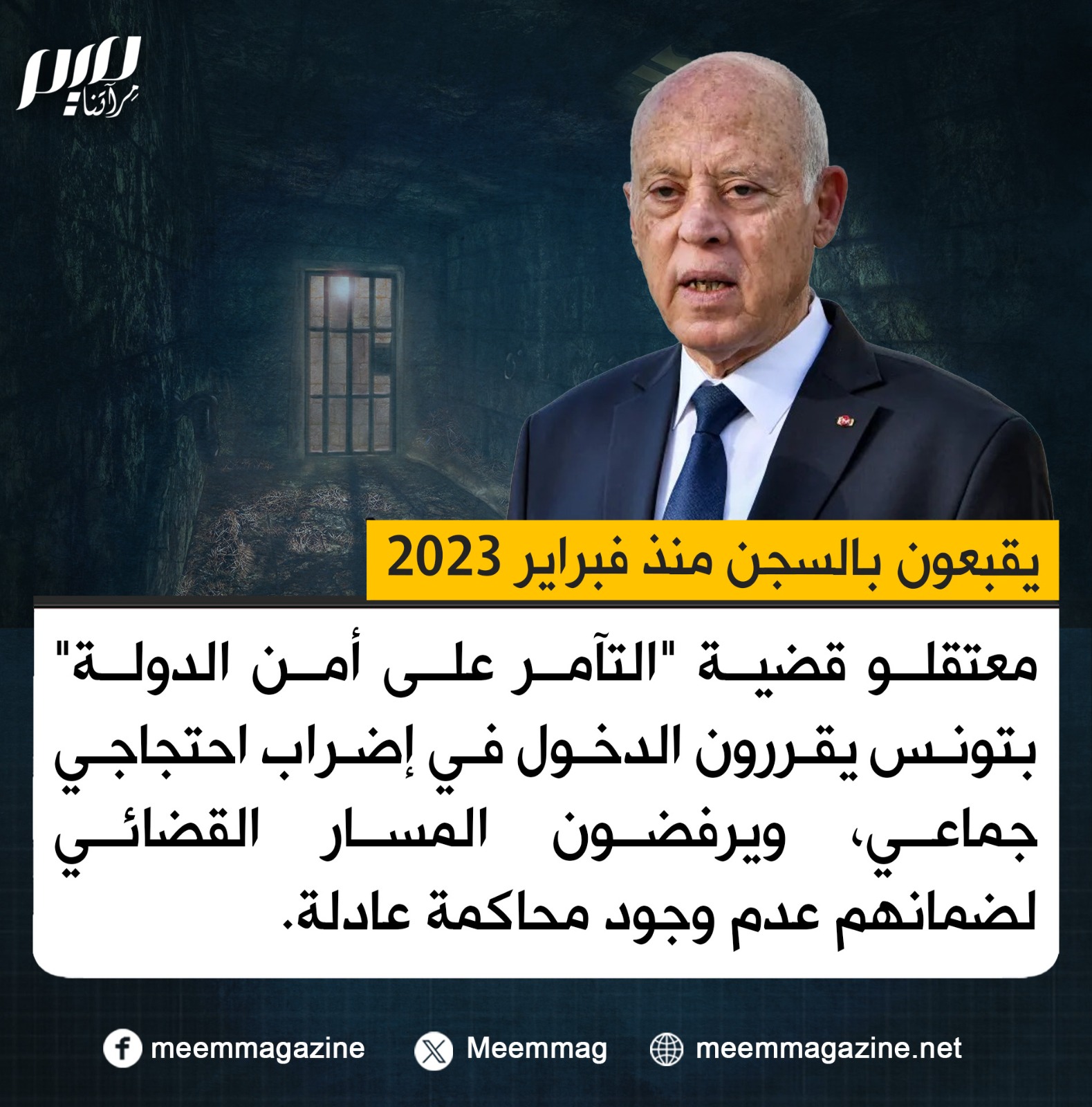 معتقلو قضية "التآمر على أمن الدولة" بتونس يقررون الدخول في إضراب احتجاجي جماعي، ويرفضون المسار القضائي لضمانهم عدم وجود محاكمة عادلة.