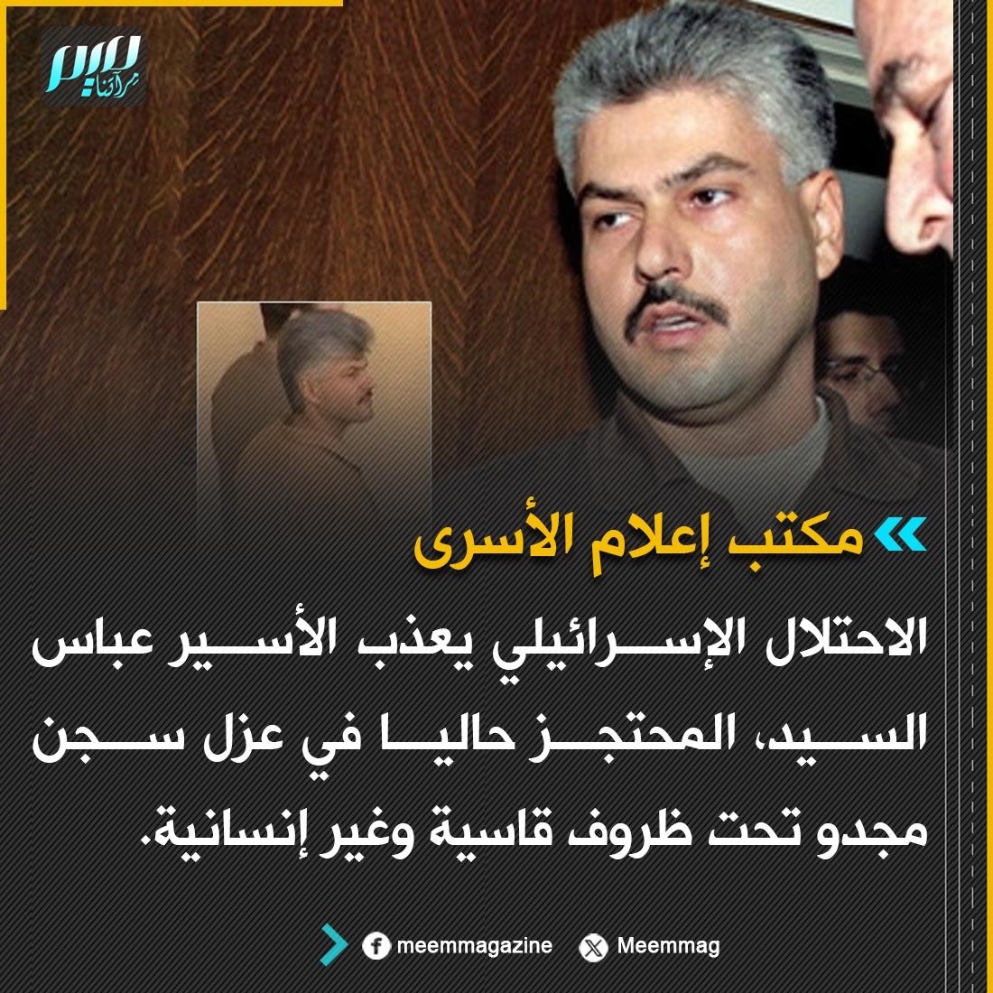 مكتب إعلام الأسرى: الاحتلال الإسرائيلي يعذب الأسير عباس السيد، المحتجز حاليا في عزل سجن مجدو تحت ظروف قاسية وغير إنسانية.