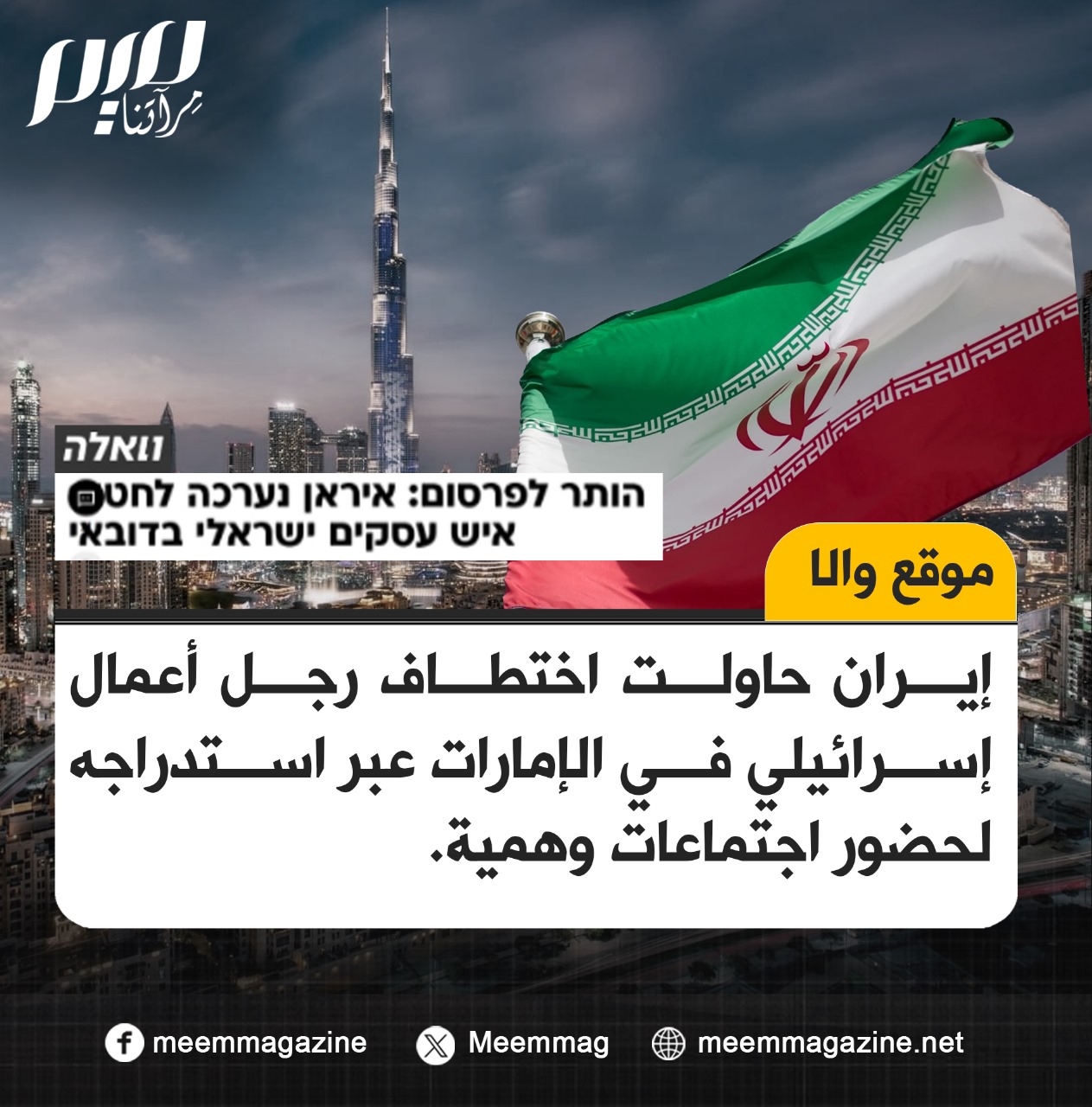 موقع والا: إيران حاولت اختـ ـطاف رجل أعمال إسرائيلي في الإمارات عبر استدراجه لحضور اجتماعات وهمية.