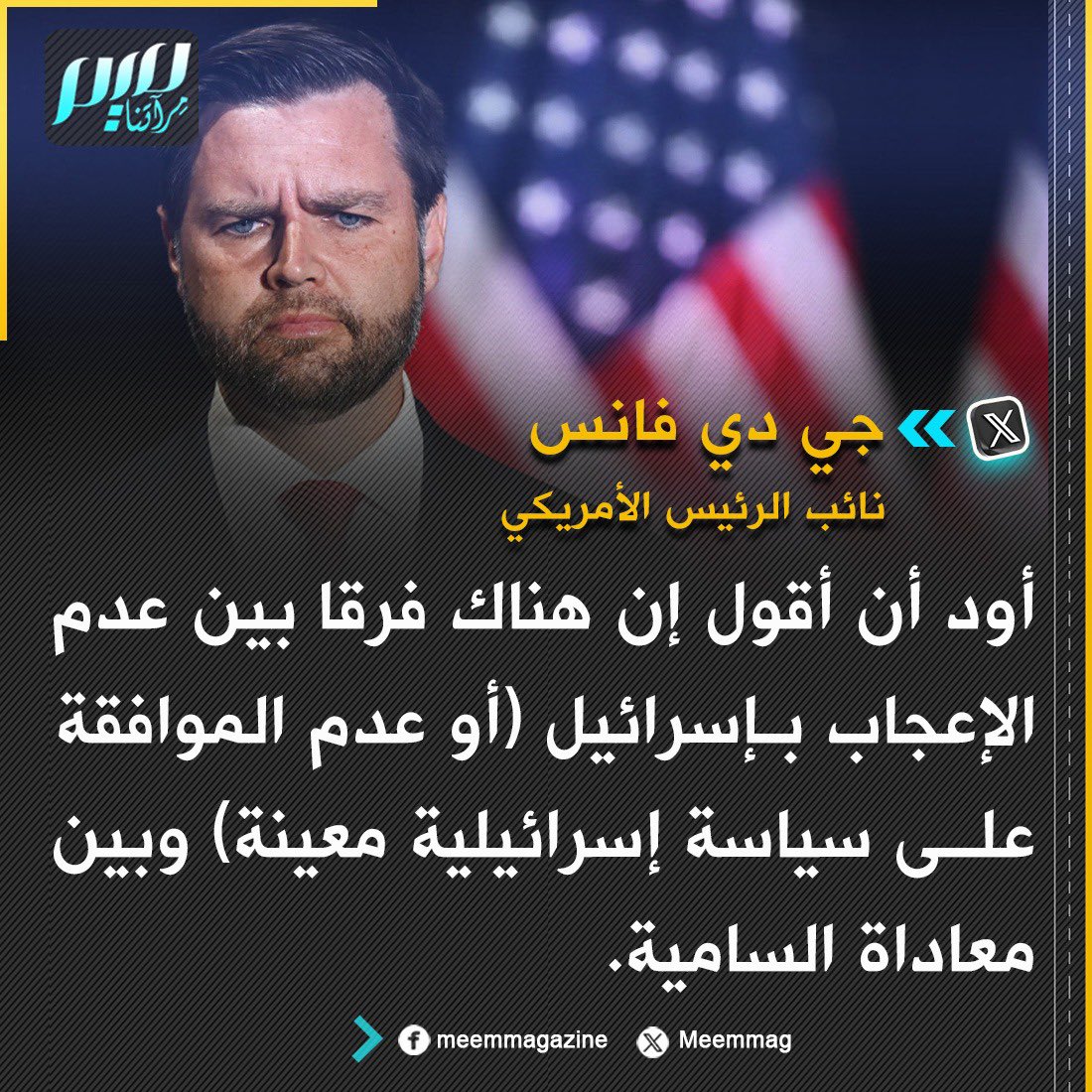 نائب الرئيس الأمريكي: هناك فرق بين عدم الإعجاب بإسرائيل (أو عدم الموافقة على سياسة إسرائيلية معينة) وبين معـ ـاداة السـ ـامية.
