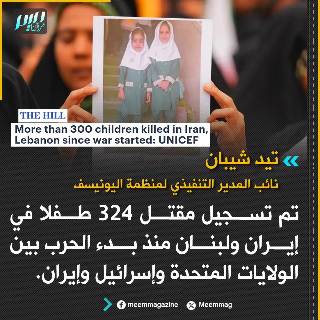 نائب المدير التنفيذي لمنظمة اليونيسف: تم تسجيل مقتل 324 طفلا في إيران ولبنان منذ بدء الحرب بين الولايات المتحدة وإسرائيل وإيران.