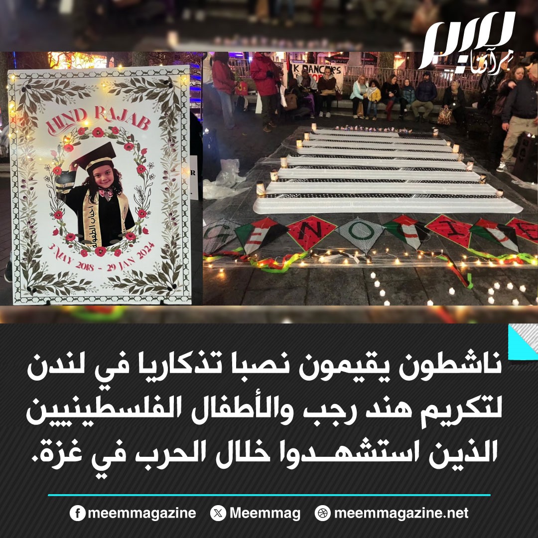ناشطون يقيمون نصبا تذكاريا في لندن لتكريم هند رجب والأطفال الفلسطينيين الذين استشـ هدوا خلال الحرب في غزة.