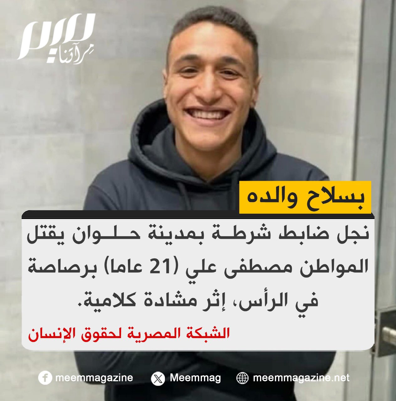 الشبكة المصرية لحقوق الإنسان: نجل ضابط شرطة يقتل مواطنا بسلاح والده إثر مشادة كلامية.