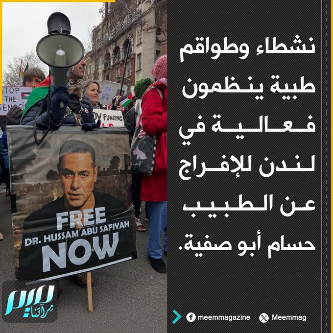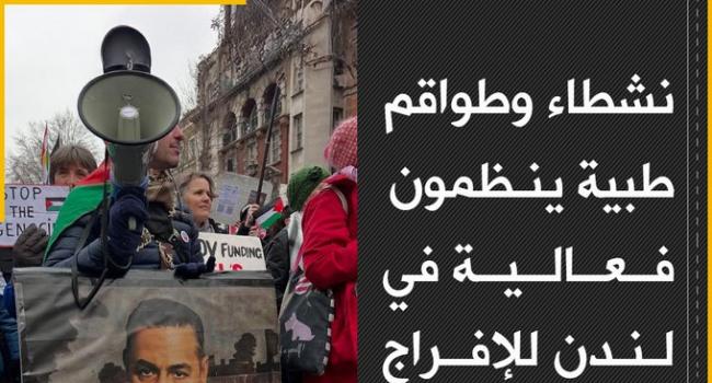 نشطاء وطواقم طبية ينظمون فعالية كبرى في لندن للإفراج عن الطبيب حسام أبو صفية.